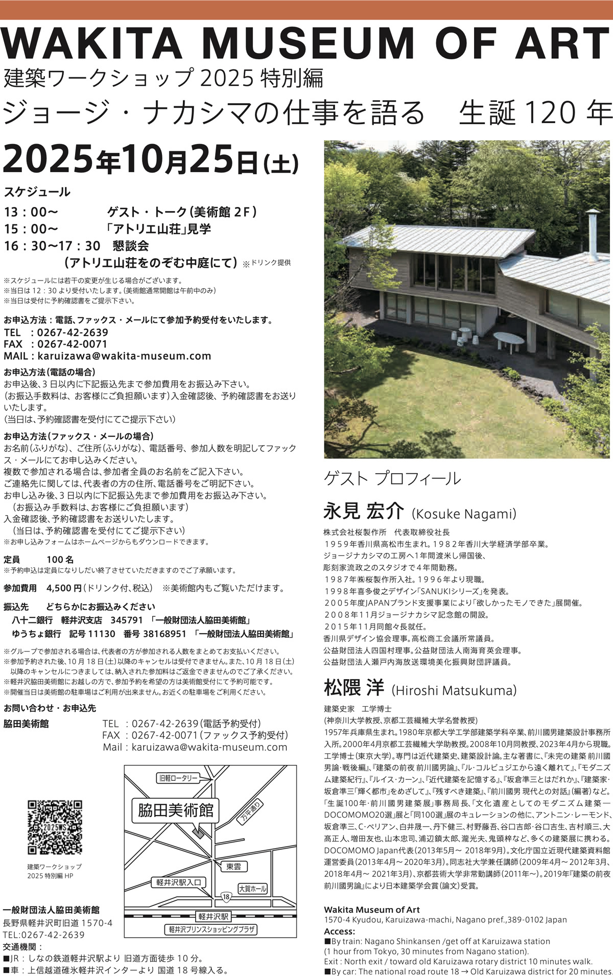 | ゲスト | 永見 宏介 Kosuke Nagami (株式会社桜製作所 代表取締役社長) + 松隈 洋 Hiroshi Matsukuma 建築史家 工学博士(神奈川大学教授、京都工芸繊維大学名誉教授) ゲストプロフィール |
